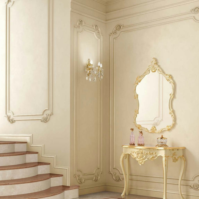 At 114 cm wide and just 45 cm deep, this effortlessly sophisticated piece fits seamlessly into small hallways, living room nooks, or bedroom alcoves. It exemplifies Modenese’s enduring commitment to artisanal finesse, marrying tradition with timeless design. Whether displayed as a refined accent or dressed with crystal and candlelight, the Aurora Charm Console serves as a singular statement of Italian craftsmanship.