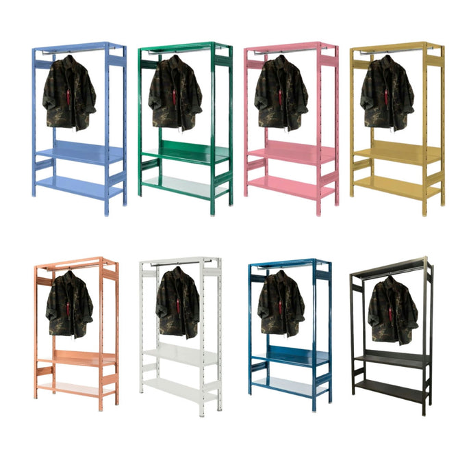 Thoughtfully engineered, this wardrobe includes adjustable shelving for flexible storage solutions, a built-in hanging rail for garment display, and essential supporting hardware to facilitate smooth assembly and safe installation. Crafted from premium S235JR steel, it balances form and function—sturdy enough for frequent use, yet visually light due to its streamlined silhouette.