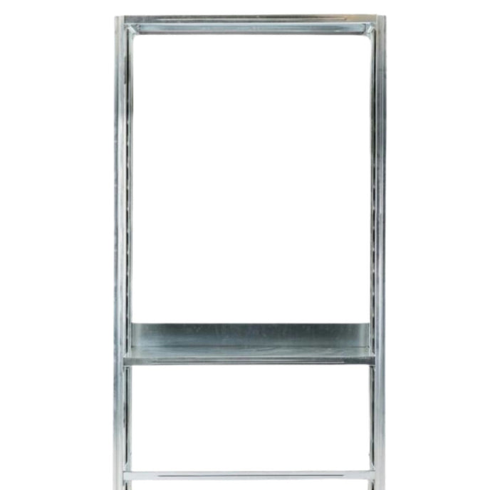 Elevate your display with the Galvanized Steel Clothing Display Shelf—a refined blend of industrial durability and minimalist aesthetics. Configured with generous shelving and a garment rail, this piece effortlessly transitions between wardrobes, retail displays, and creative studios.