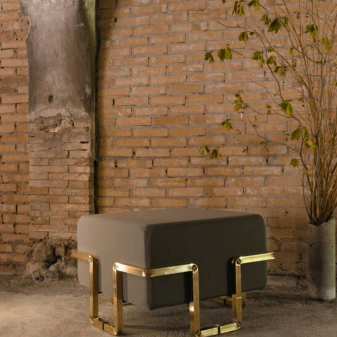 With its clean lines and sculptural appeal, the LG-02 Pouf is a prime example of Lorenzo Guzzini’s “design through subtraction” philosophy. The upholstered top, dressed in eco-conscious fabric seamlessly complements the radiant brass frame, forming a unified silhouette. The craftsmanship lies in its subtlety—the brass structure gently envelops the upholstery with precise curvature, delivering both elegance and support without visible welds.
