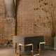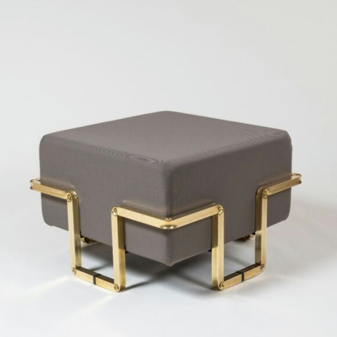 Brushed Brass Base; Upholstered Top in Eco-Conscious Fabric