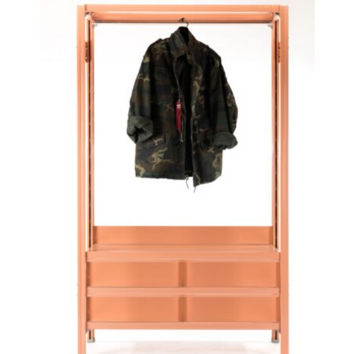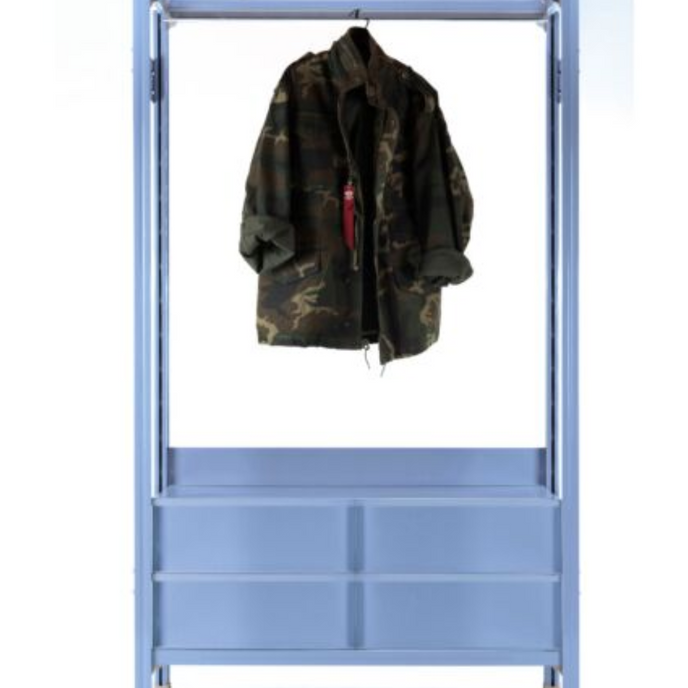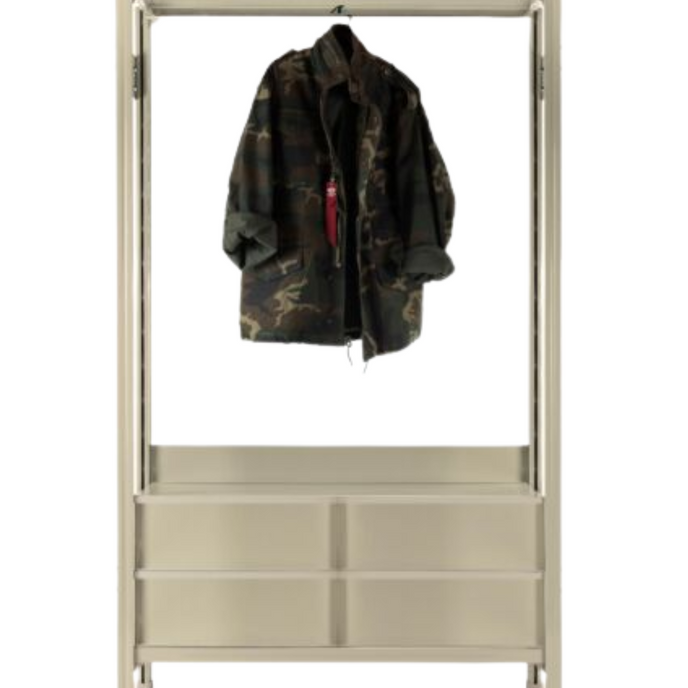 Elevate your storage with the Metal Wardrobe with Lower Drawers in RAL 7032—a piece where minimalism and functionality converge with Italian sophistication. The matte dove-gray finish lends contemporary elegance, while its open-rail design invites garment display and easy access. With four adjustable shelves and bottom drawers, it balances display and storage needs seamlessly.
