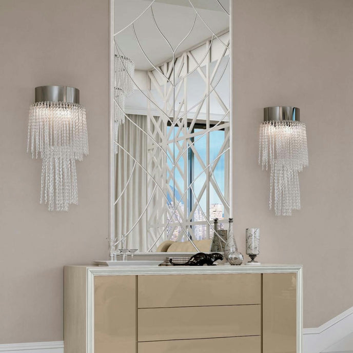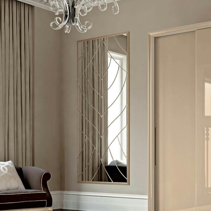 Introducing the Nova Chic Mirror, a contemporary piece that combines sleek modern design with luxurious details. This rectangular mirror features a stunning internal golden decoration, creating a sophisticated focal point for any room. The harmonious blend of clean lines and opulent accents makes it a versatile addition to both contemporary and classic interiors, adding a touch of glamour and refinement to your space.
