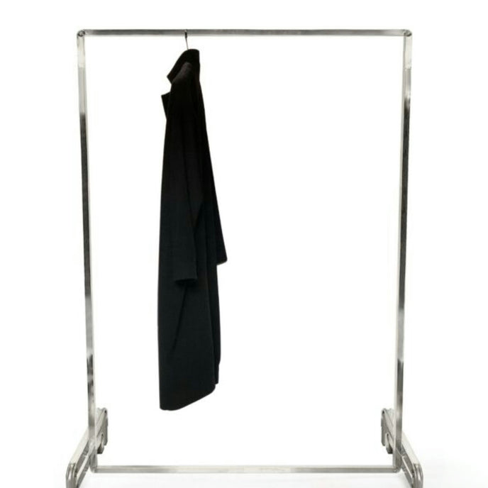 Make a statement with the RELEVÉ Clothing Display Rack, where minimalist design meets functional elegance. Crafted entirely from folded chrome steel, the structure showcases the purity of line and form—no welding, no excess, just purposeful architecture. Its clean silhouette offers a refined backdrop for showcasing curated fashion in any setting.