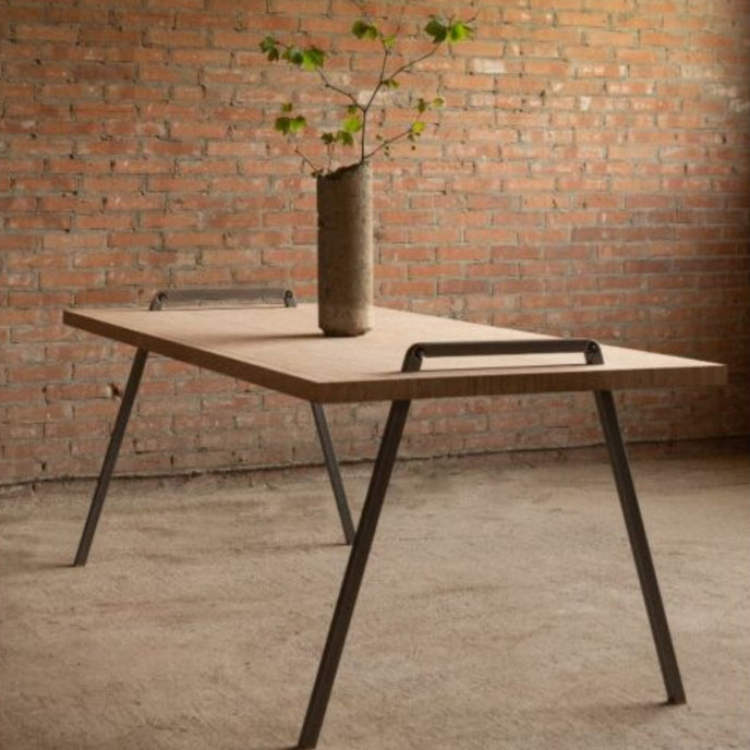 The Strato Table – Laminated Beech and Powder-Coated Steel is a refined embodiment of modern Italian design—where industrial clarity meets natural warmth. The tubular steel legs, unadorned and refined with a matte epoxy finish, reveal structural elegance through precise geometry. The thick BauBuche tabletop—a laminated hardwood known for its durability and minimalist aesthetic—balances the metal's cool strength with organic texture.