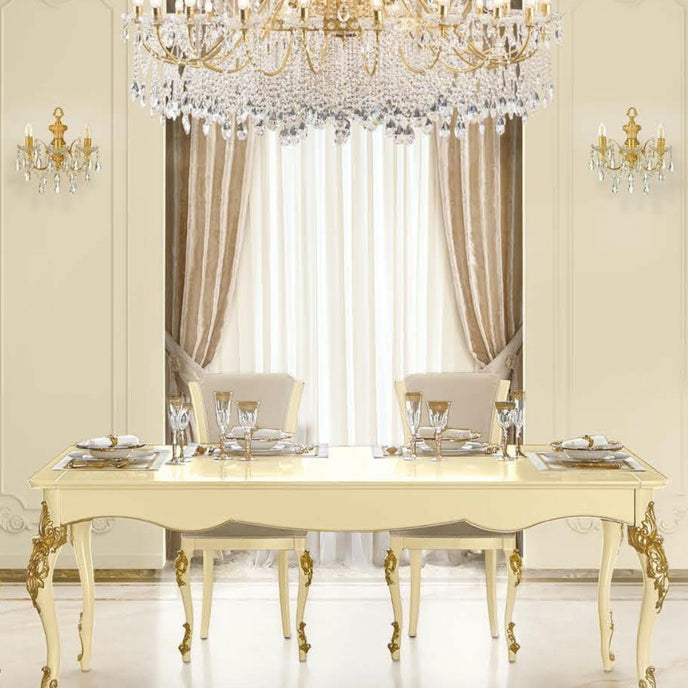 Effortlessly graceful, the Luxe Ivory Dining Armchair is a study in refined neoclassical design. Crafted from solid beechwood and finished in a creamy ivory lacquer with hand-applied gold leaf detailing, its silhouette is elegant yet inviting.